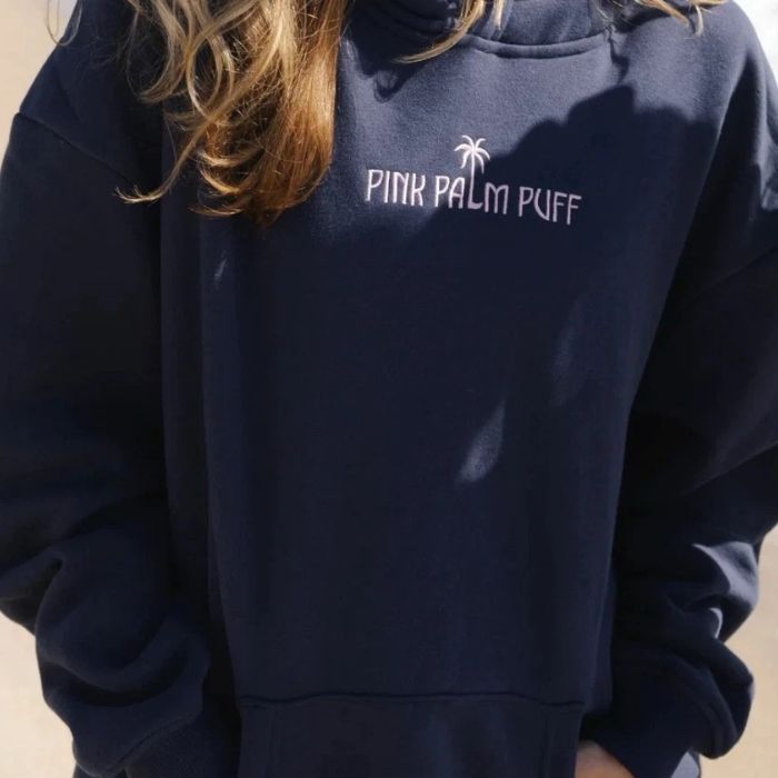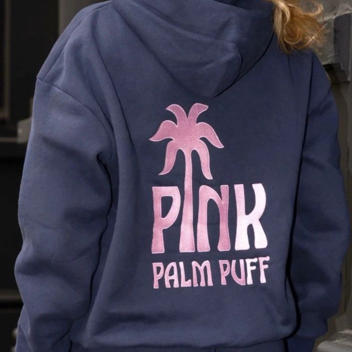 Pink Palm Puff Navy Blue Hoodie